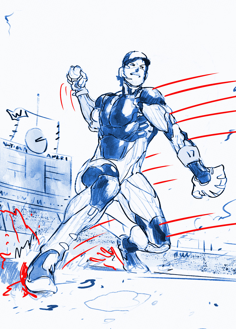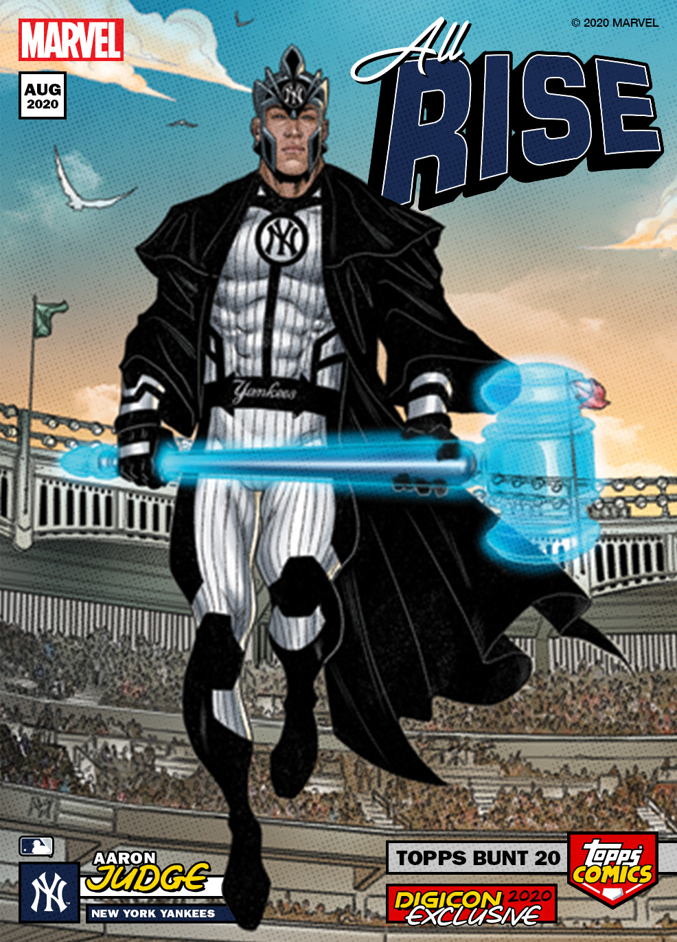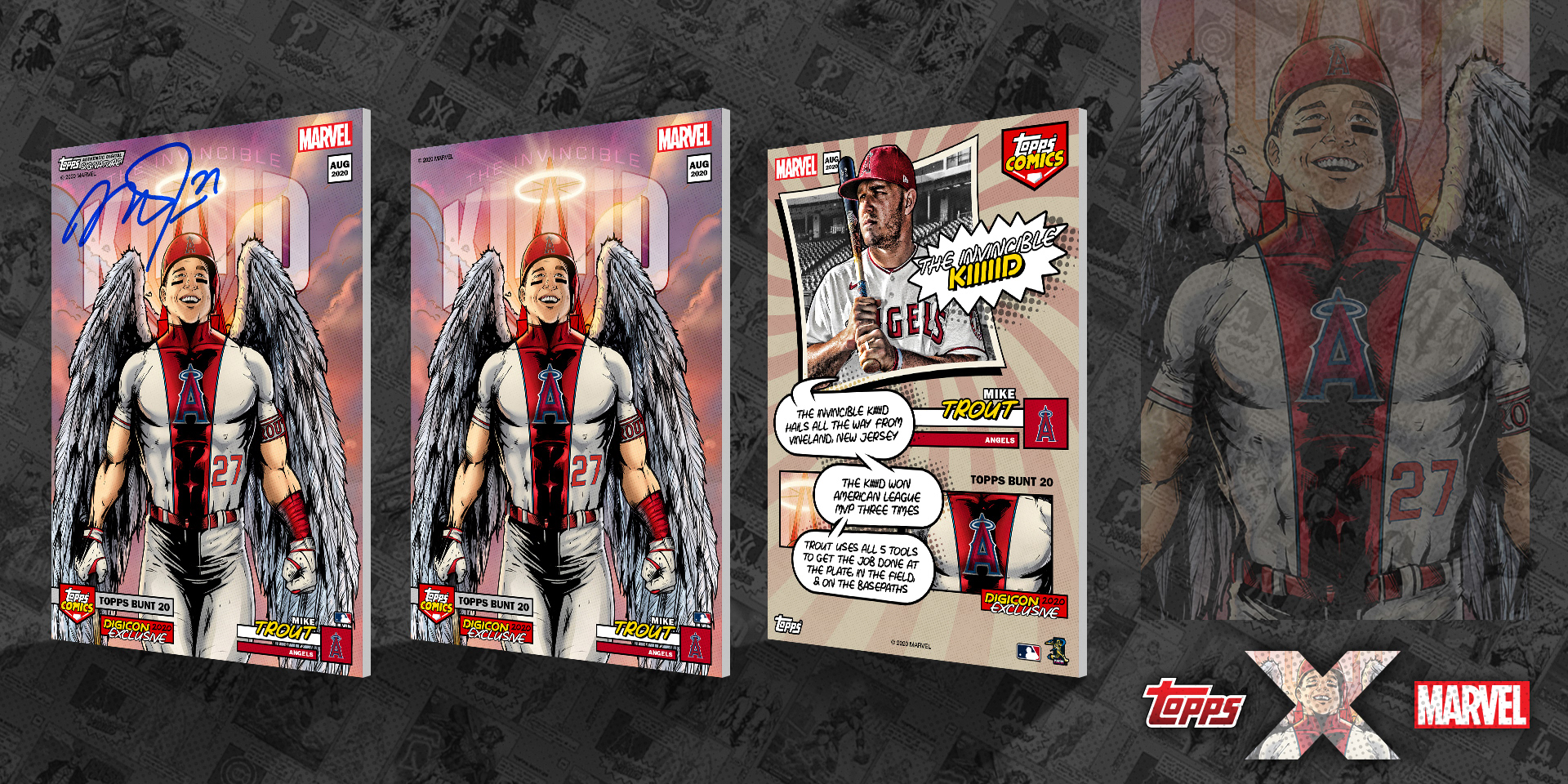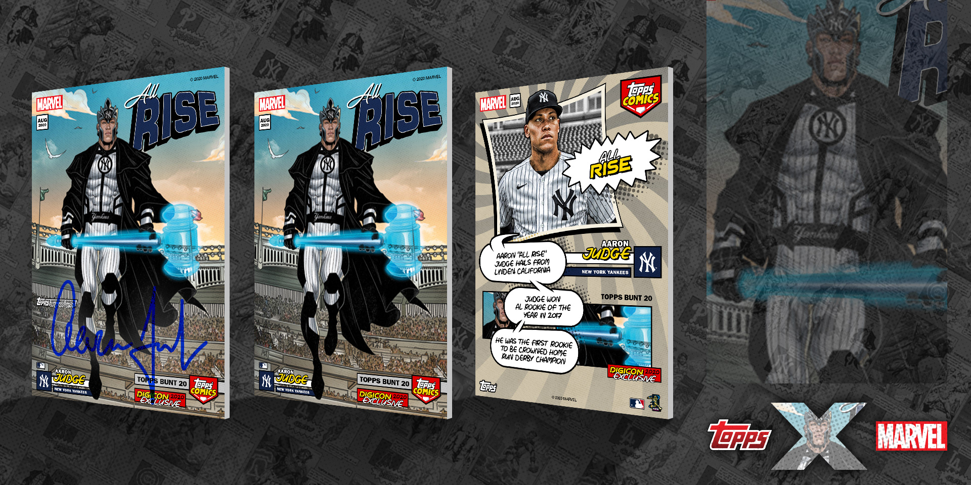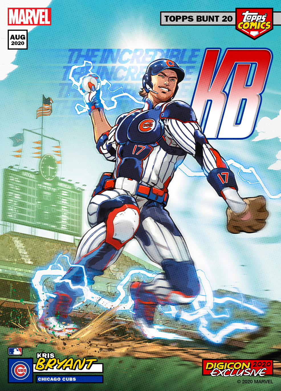 Crossover project of current MLB stars as Marvel superheroes. I'm proud to have art directed this project from start to finish, working with Marvel artists from sketches, to inks, and to full color art. From there, I took the amazing full color art and added all Topps and MLB branding, player/superhero nickname text, and all other graphic elements. See them brought to life with motion below and in the Topps MLB Bunt app!